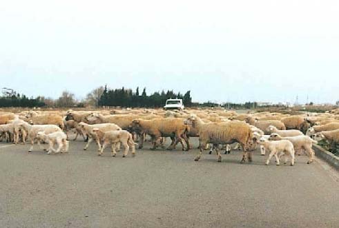 4) Si circula al lado del arcén de la carretera donde se encuentran los animales, que no tienen ruta de trashumancia, ¿qué debe hacer? Id: 1386