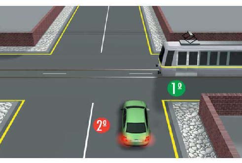 6) Un turismo circula por una vía preferente y por la derecha se aproxima un tranvía, ¿quién tiene preferencia de paso? Id: 4939