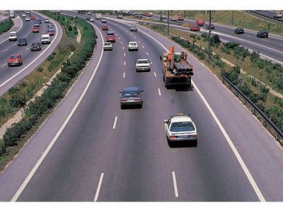 A) Bifurcación hacia la izquierda en calzada de tres carriles.