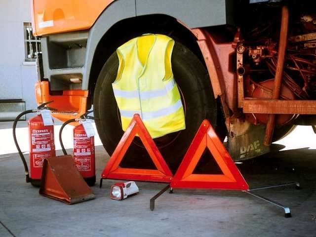 B) Un dispositivo de preseñalización de peligro y un chaleco reflectante.