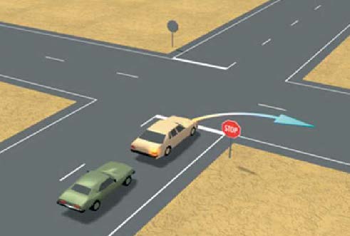 3) Cuando el vehículo amarillo gire a la derecha, ¿qué tiene que hacer el vehículo verde? Id: 5896