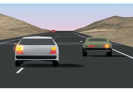 24) El conductor del vehículo que está adelantando, quiere interrumpir el adelantamiento para regresar a la derecha, ¿qué debe hacer el conductor del vehículo verde? Id: 998