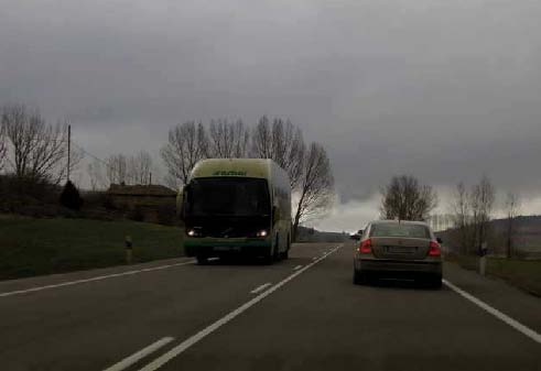 21) Estos vehículos circulan por un carril habilitado en sentido contrario al habitual, ¿pueden desplazarse al carril normal de circulación? Id: 240