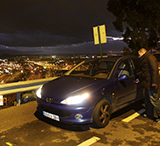 27) Es de noche y necesita inmovilizar su vehículo en el arcén de una carretera por avería. ¿Qué luces debe encender? Id: 6005
