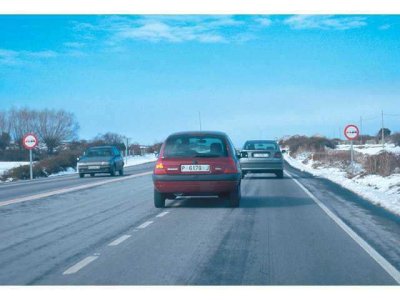 A) No, porque cuando está prohibido adelantar también está prohibido hacer un cambio de sentido.